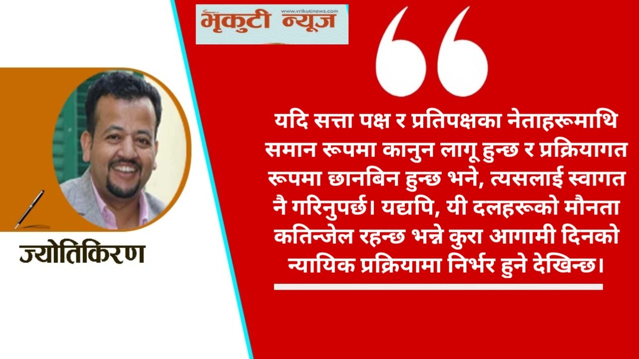 प्रधानमन्त्री शाहको सरकारले कानुनभन्दा माथि कोही छैन भन्दै गर्दा त्यो प्रक्रिया पारदर्शी, निष्पक्ष र प्रश्नरहित हुनु अनिवार्य छ। यतिबेला सडकको भीड होइन, अदालतको इजलास र कानुनको सर्वोपरिताको परीक्षण हुनु पर्दछ