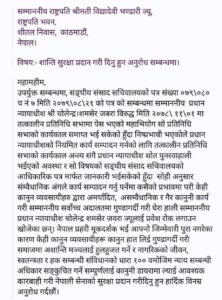 निवेदनको पुरापाठ यस्तो रहेको छ ।